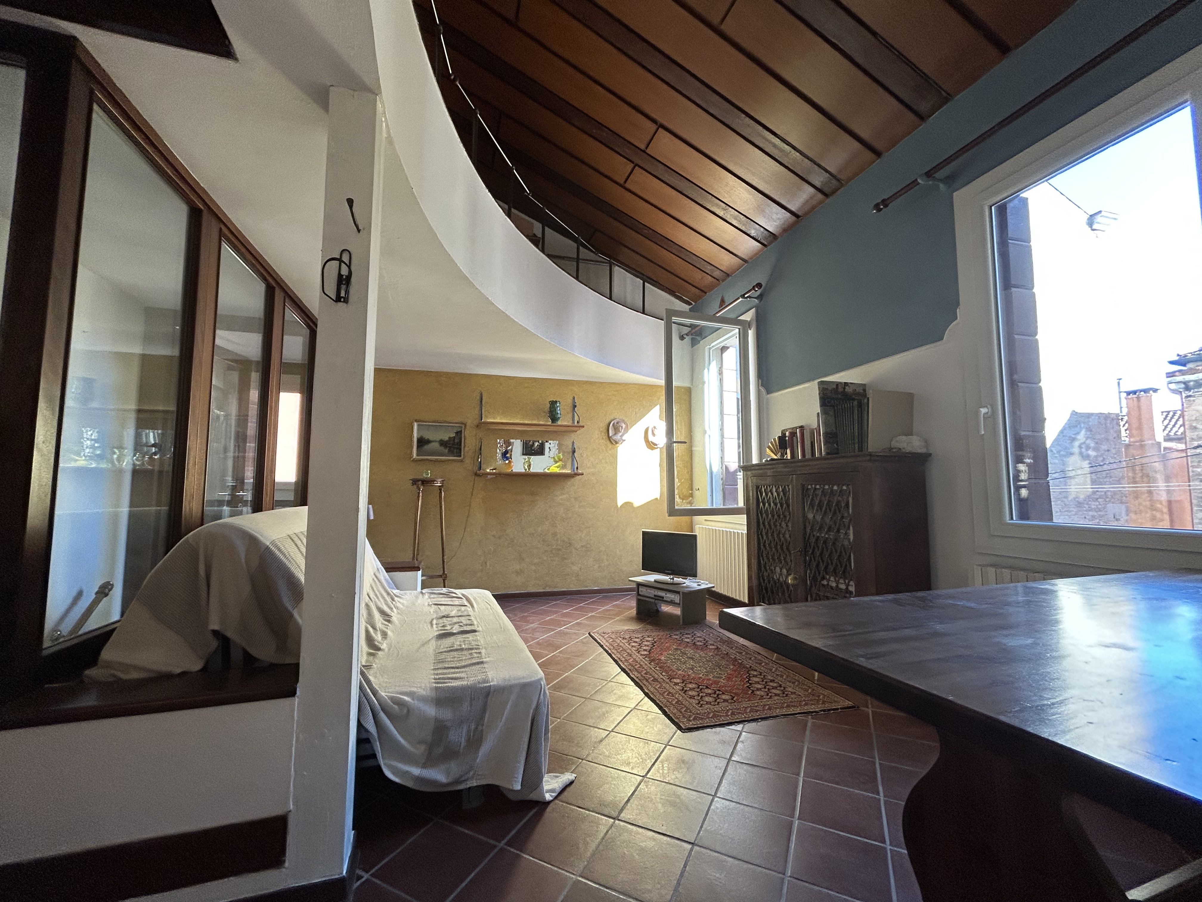 VENEZIA Dorsoduro vicinoanza Guggenheim, delizioso appartamento porta sola al secondo e ultimo piano, composto da luminoso soggiorno cucina abitabile bagno oltre a bel soppalco ricavato nella generosa altezza con zona letto cle. G euro 270.000 rif.1164← Torna all'elenco immobili